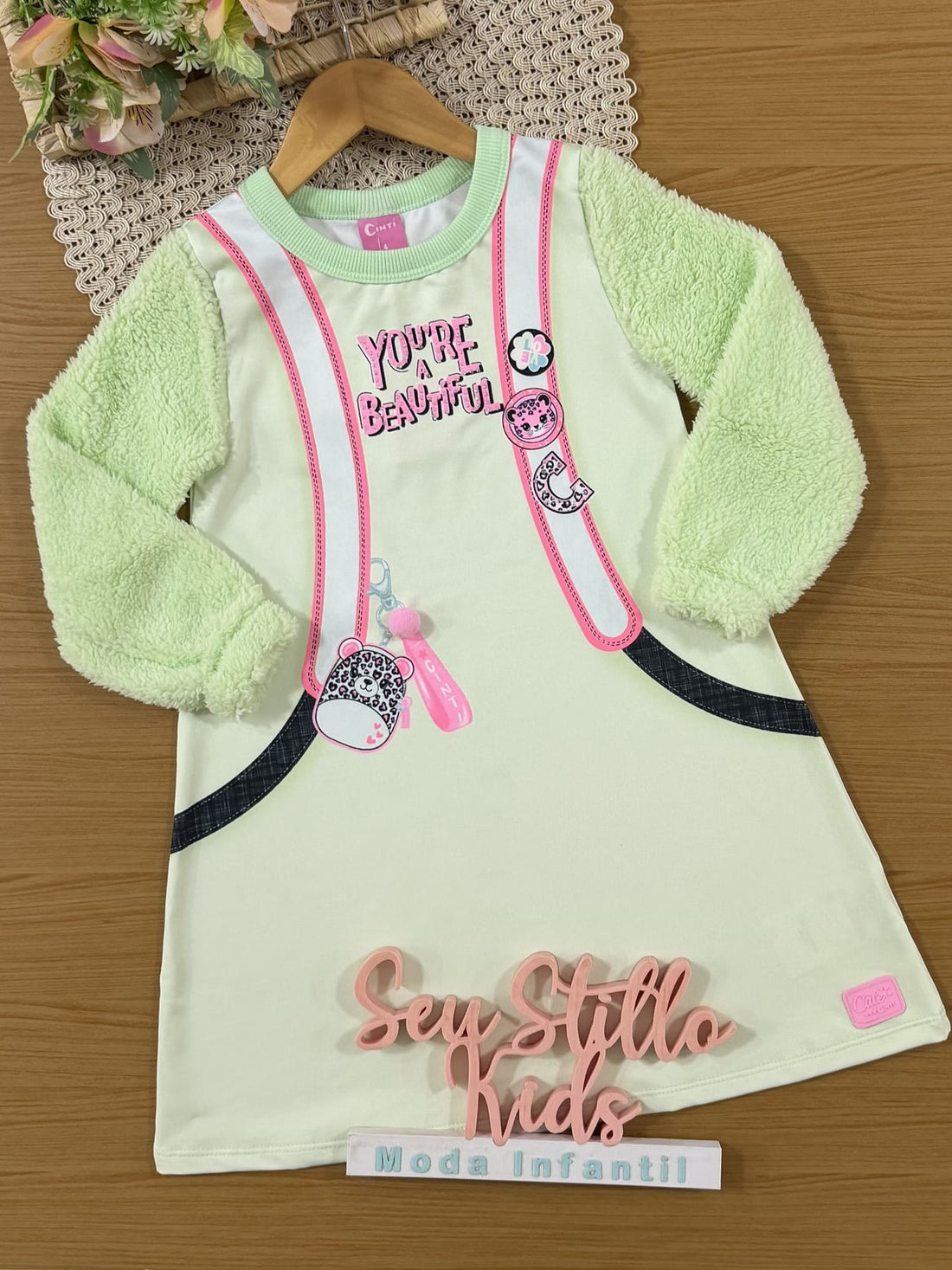 Vestido Infantil Cinti Inverno Flanelado Verde Mochilinha