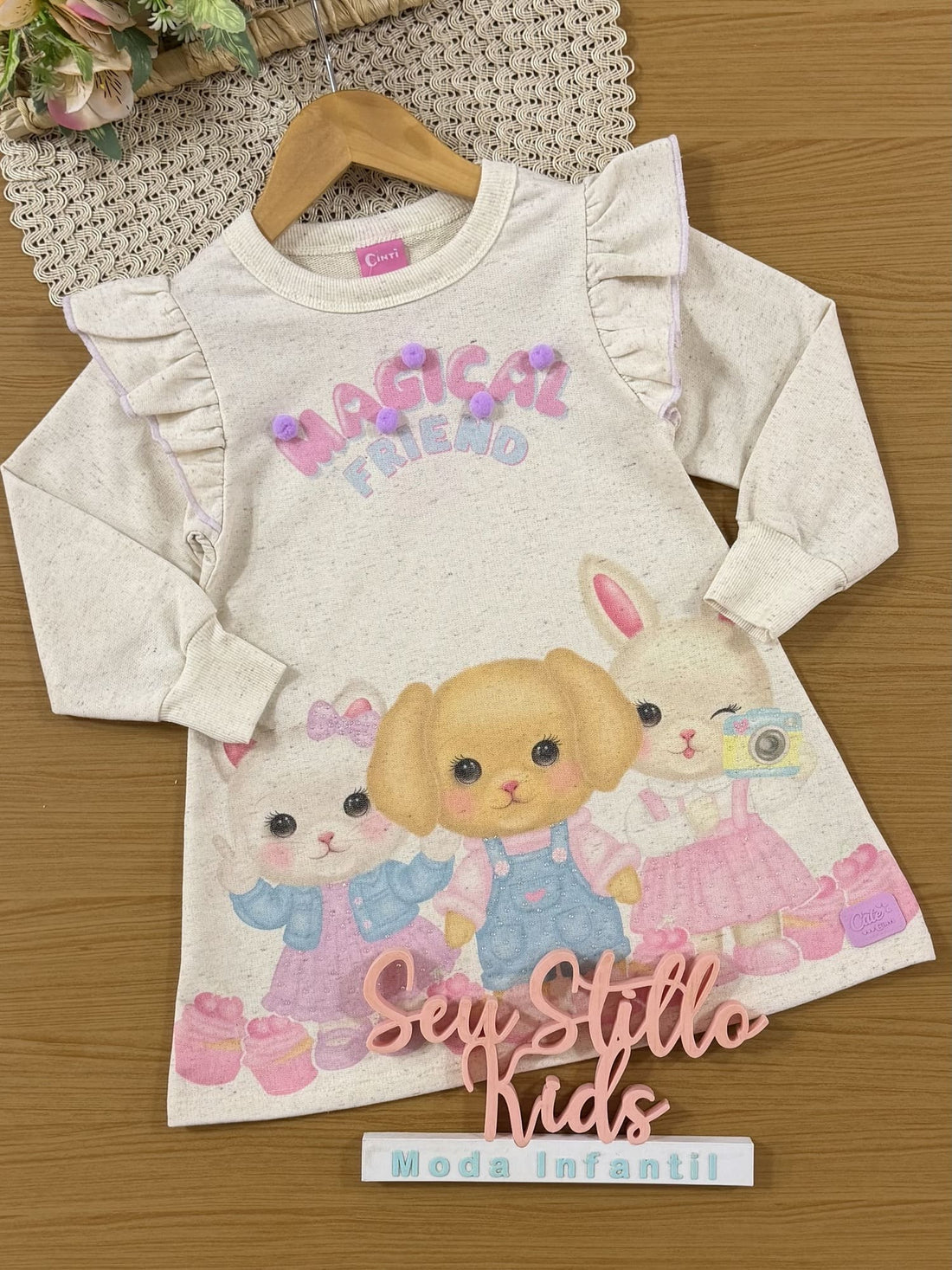 Vestido Infantil Cinti Inverno Off White Magical Friend