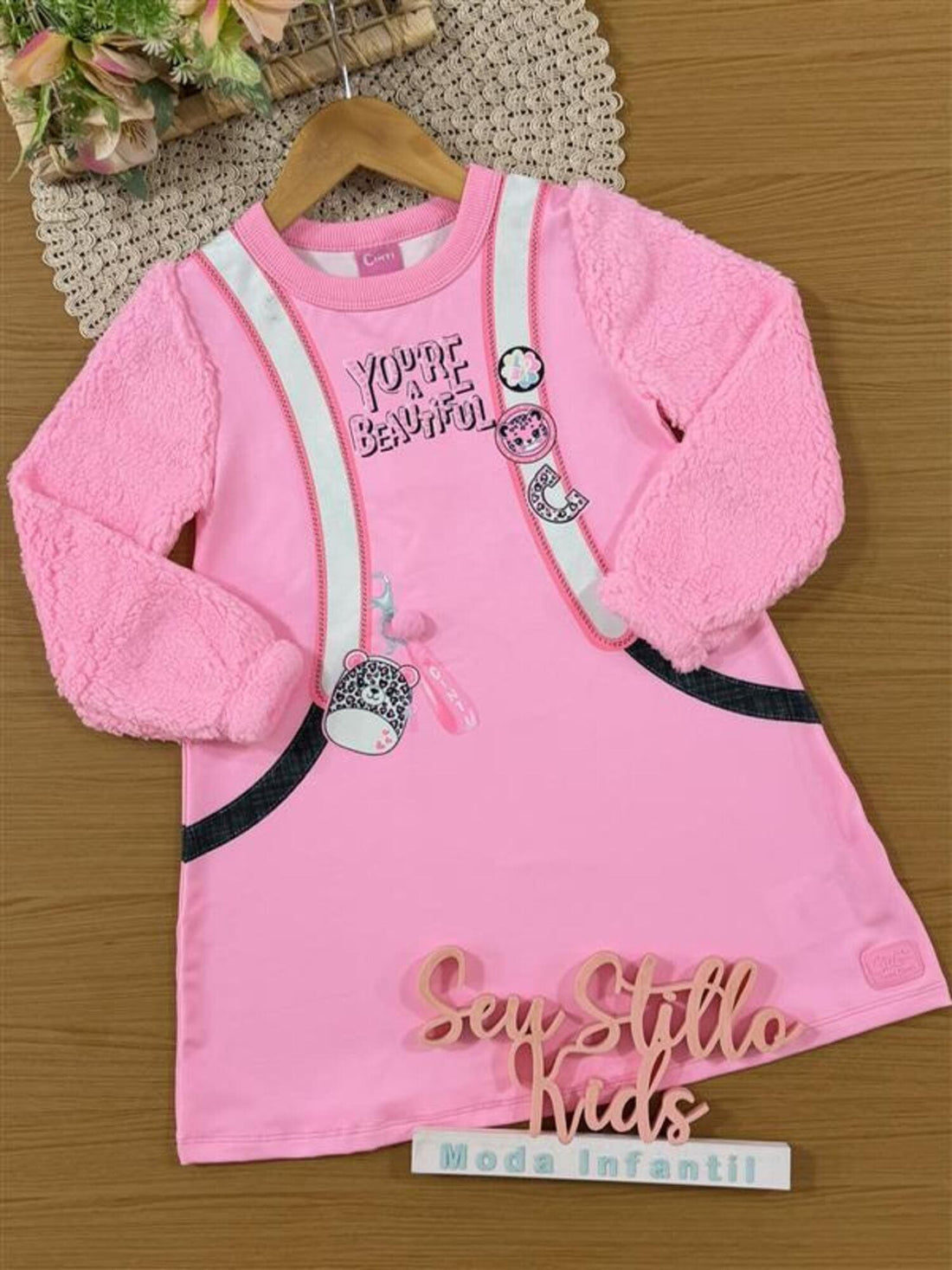 Vestido Infantil Cinti Inverno Flanelado Rosa Mochilinha