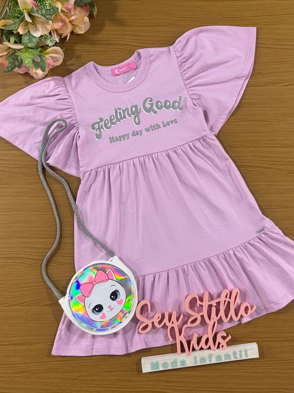 Vestido Infantil Cinti Verão Lilás com Bolsinha Gatinha