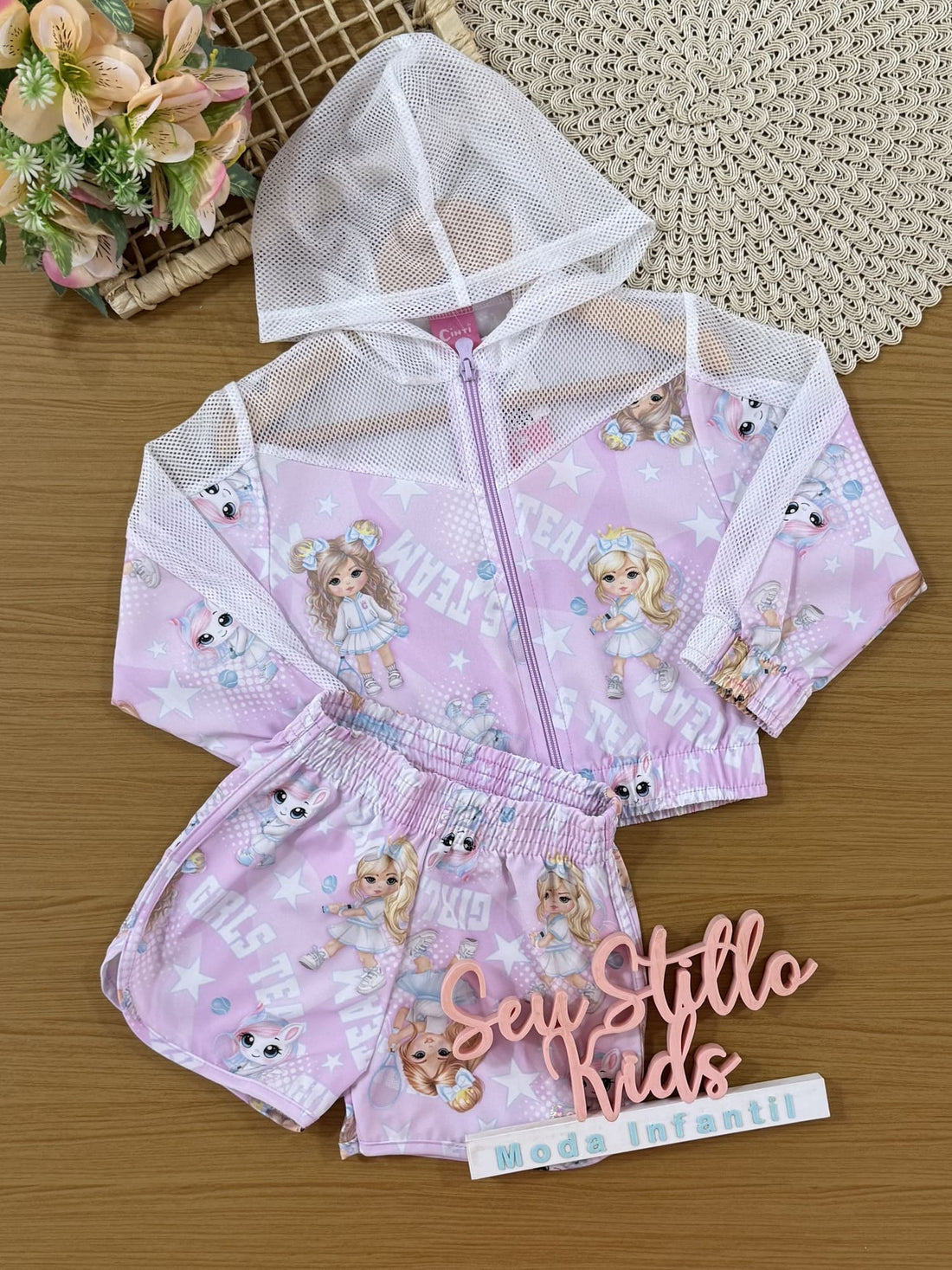 Conjunto Infantil Cinti Verão com Shorts e Jaqueta Rosa Menininha Tênista