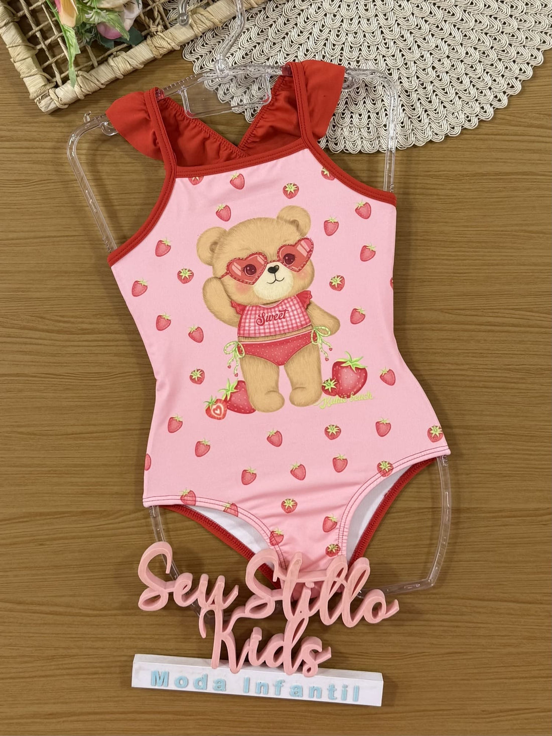 Maiô Infantil Kukiê Verão Rosa Ursinha Moraguinho
