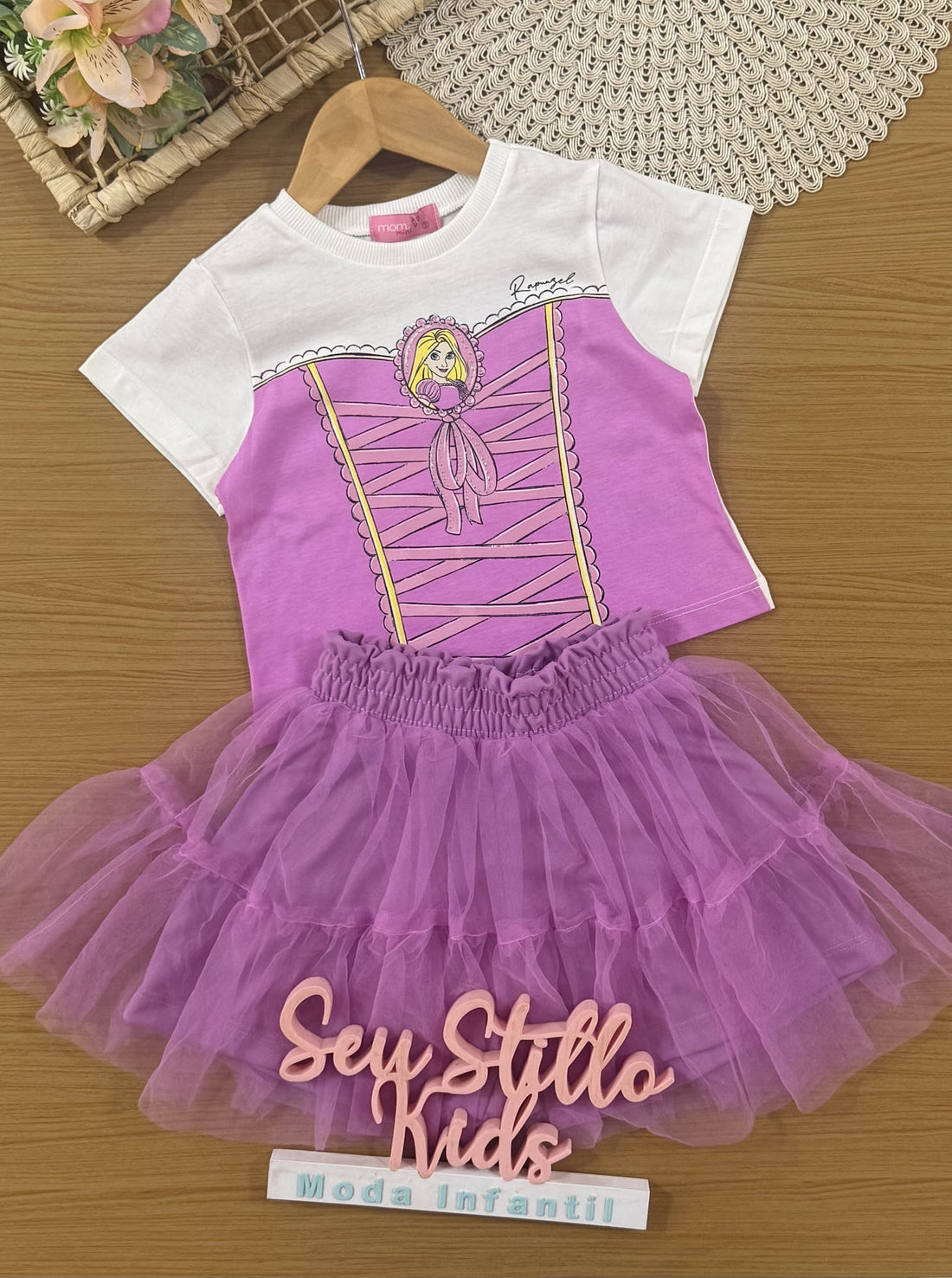 Conjunto Infantil Momi Verão com Saia em Tule e Blusa Lilás Rapunzel