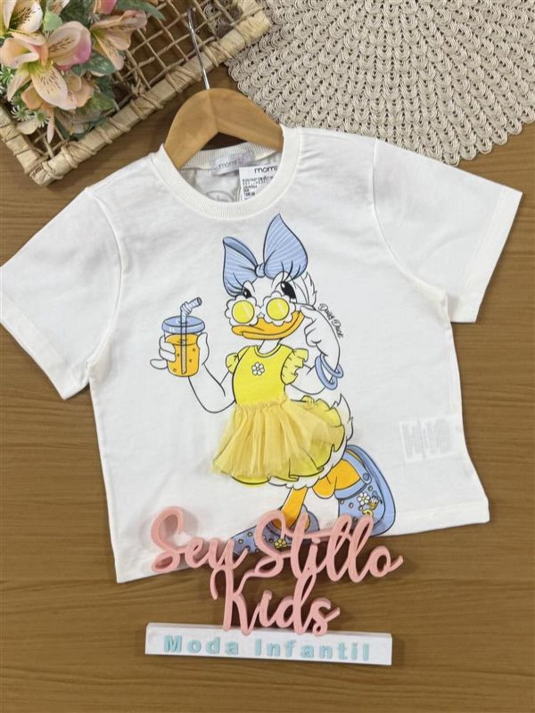 Blusa Infantil Momi Verão Branca com Detalhe emTule Daisy Duck Disney
