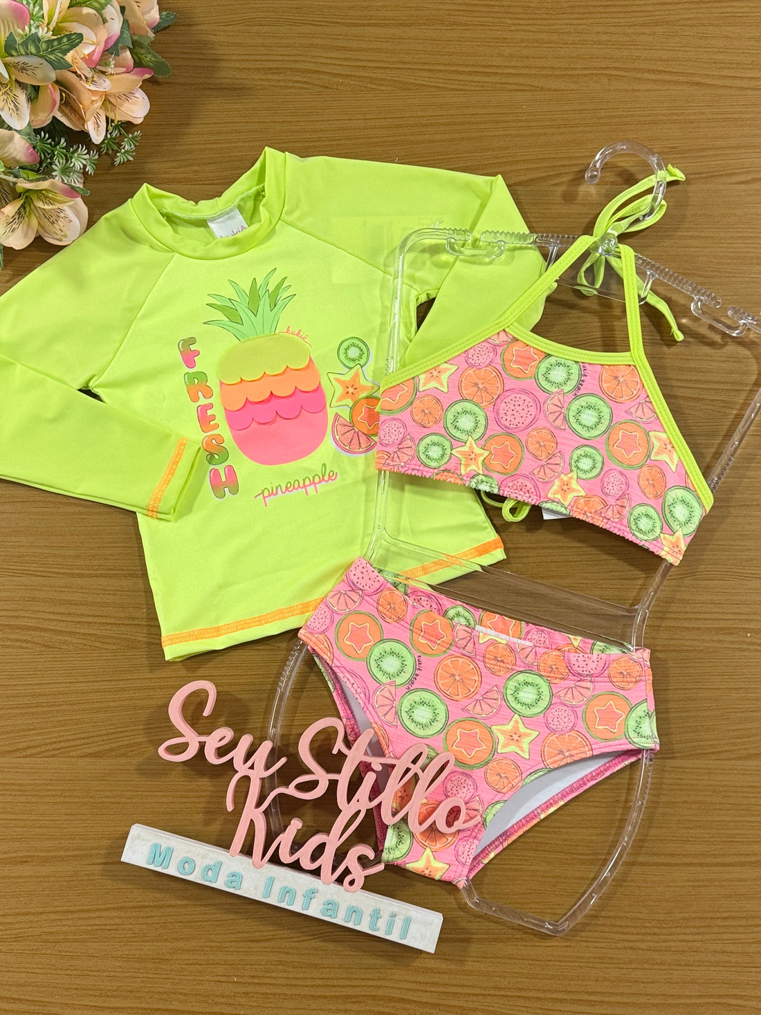Biquini Infantil Kukie Verão com Blusa Manga Longa Abacaxi