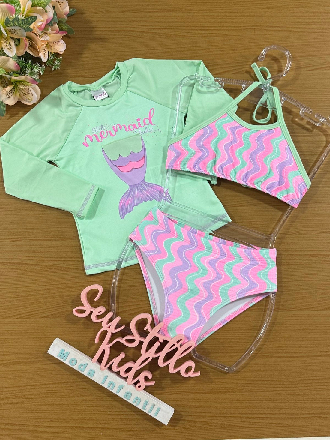 Biquini Infantil Kukie Verão com Blusa Manga Longa Sereia