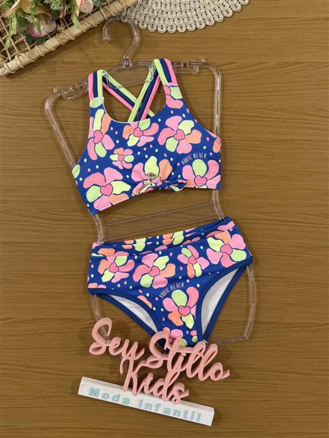 Biquíni Infantil Kukiê Verão Azul Florzinha Corações