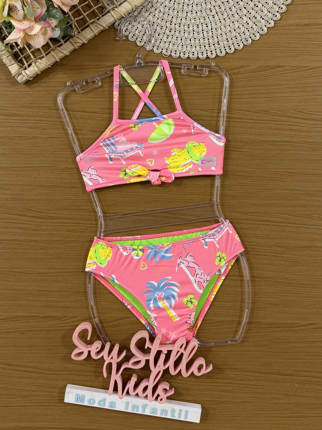 Biquíni Infantil Cinti Verão Rosa Animais na Praia