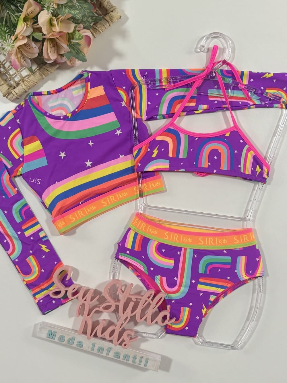 Biquíni Infantil Siri Kids com Cropped Manga Longa Eduarda Rainbow 39195