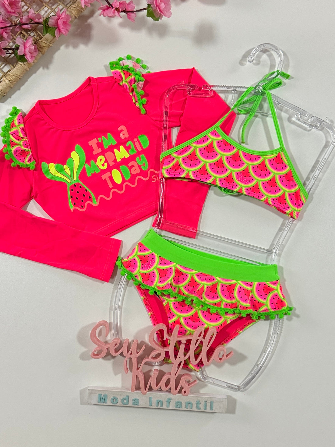 Biquíni Infantil Siri Kids com Cropped Manga Longa Sereia Melancia 39203