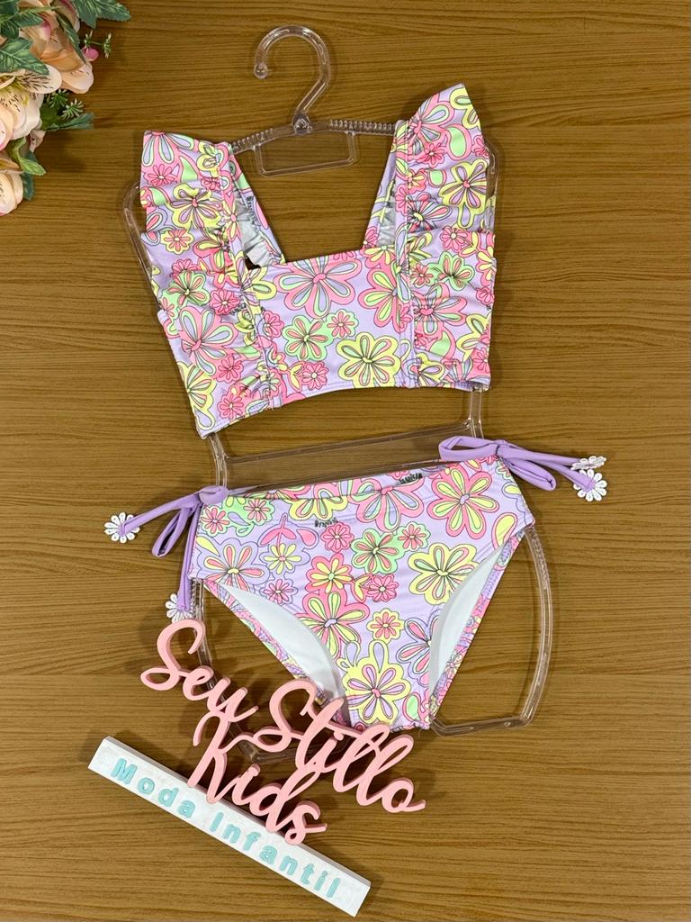 Biquíni Infantil Kukie Verão Rosa Neon Florzinha