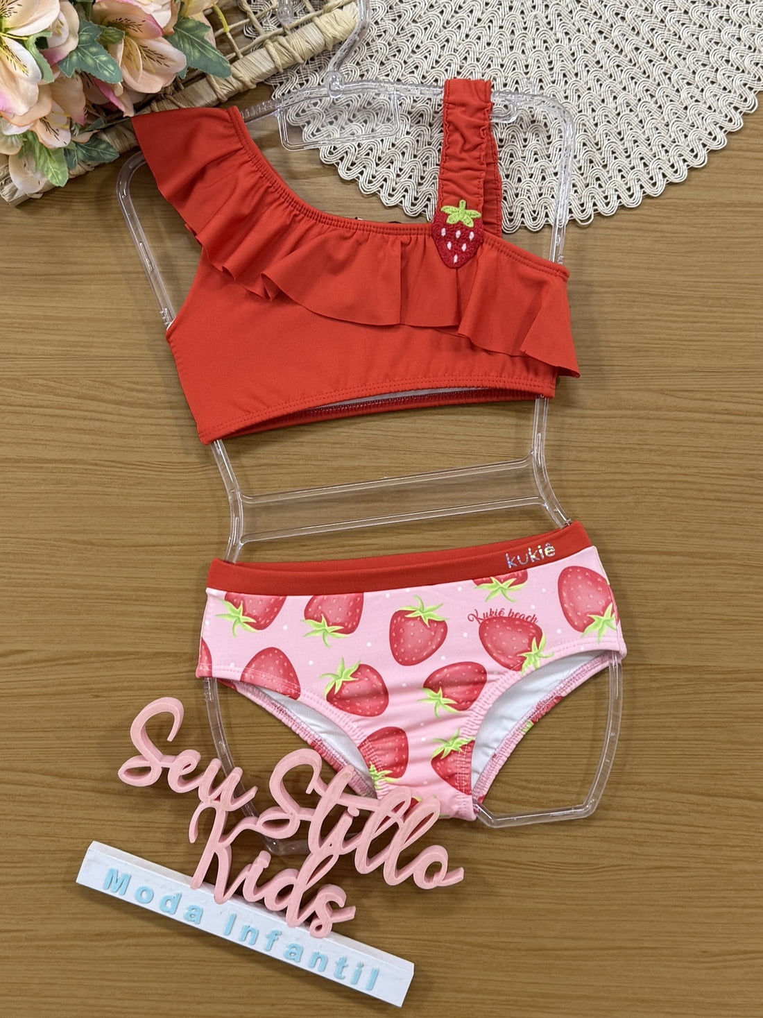 Biquíni Infantil Kukiê Verão Vermelho Moranguinho
