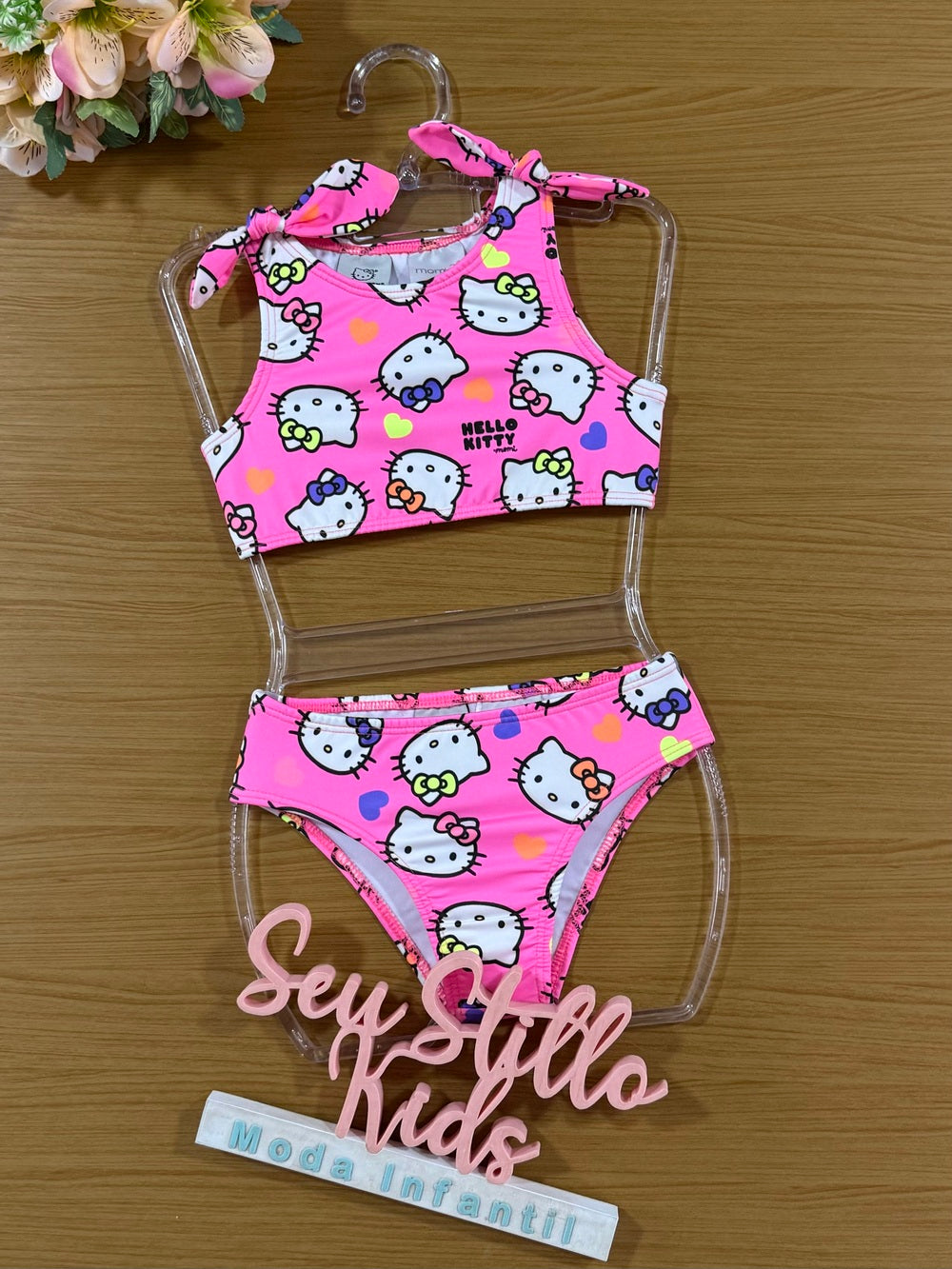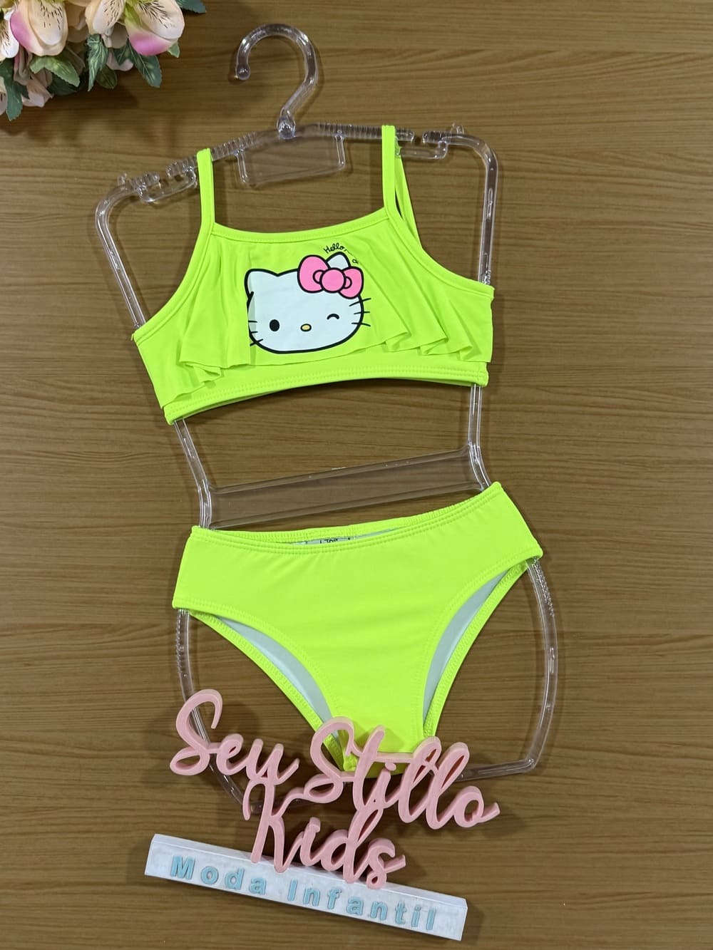 Biquíni Infantil Momi Amarelo Neon com Babado Hello Kitty