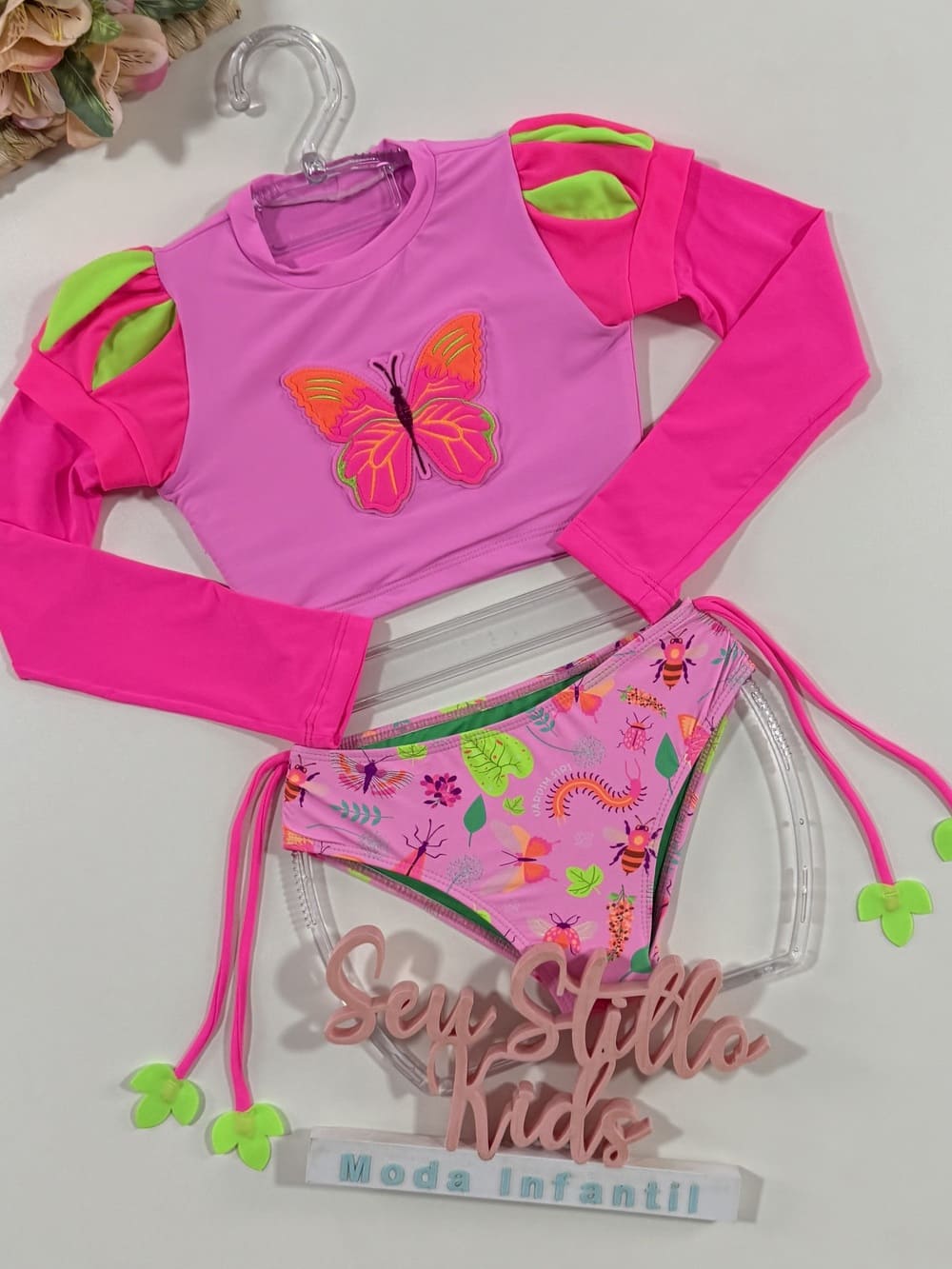 Biquíni Infantil Siri Kids Gabi Cropped Manga Longa Est Borboleta 40196