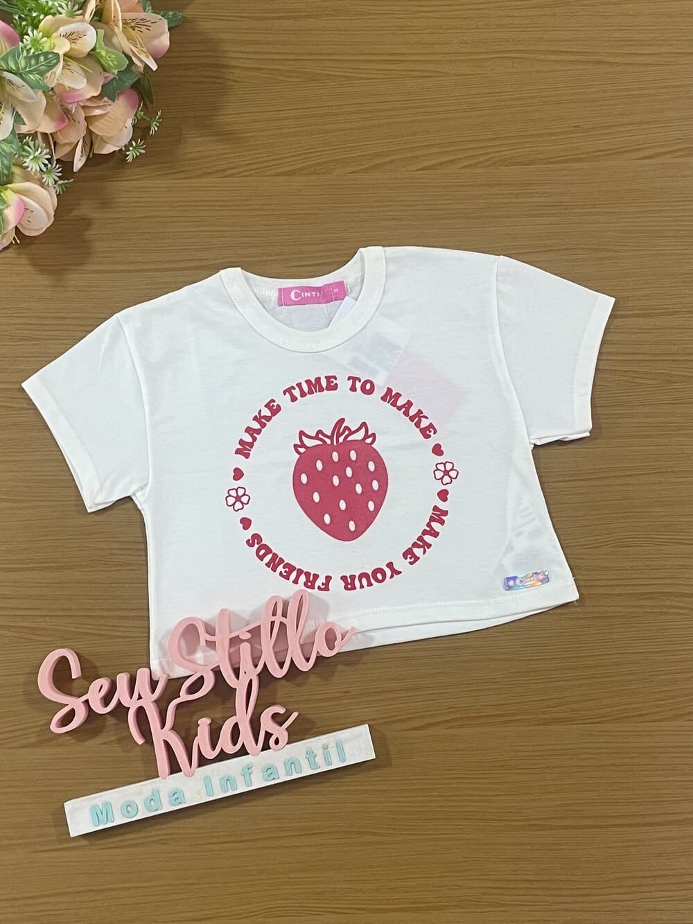 Blusa Infantil Cinti Verão Branca Moranguinho