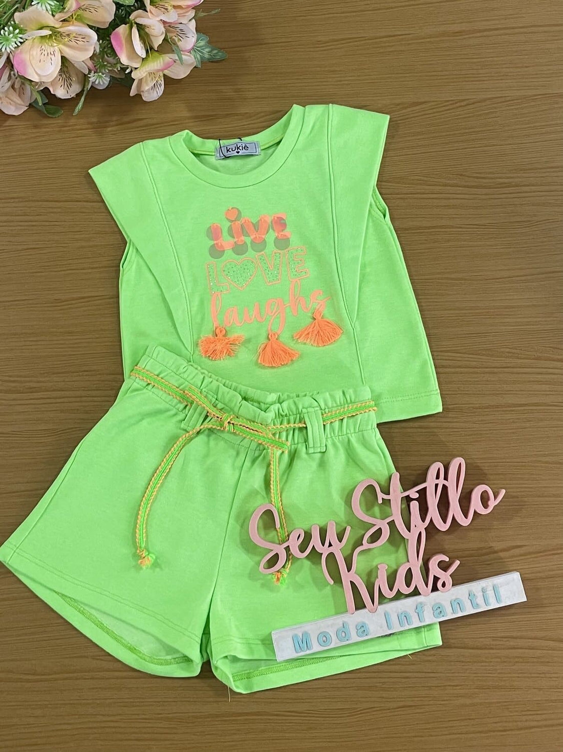 Conjunto Infantil Kukie Shorts e Blusa Verde Love