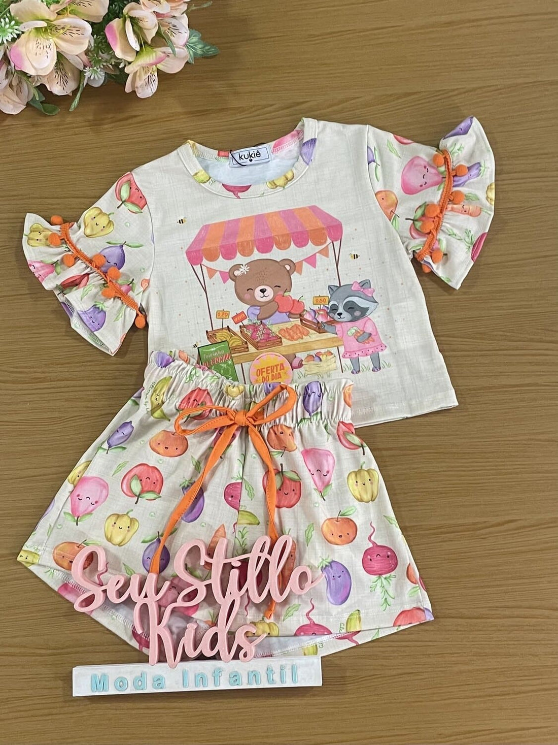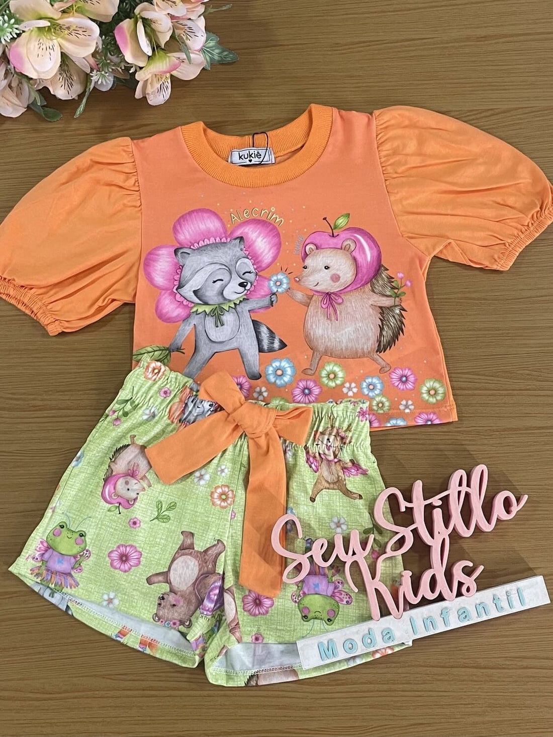 Conjunto Infantil Kukiê Verão Shorts e Blusa Ursinha Floresta