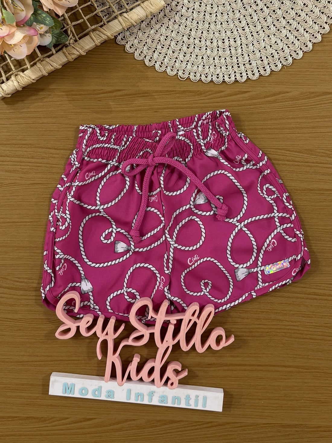 Shorts Infantil Cinti Verão Rosa Lacinho Coração