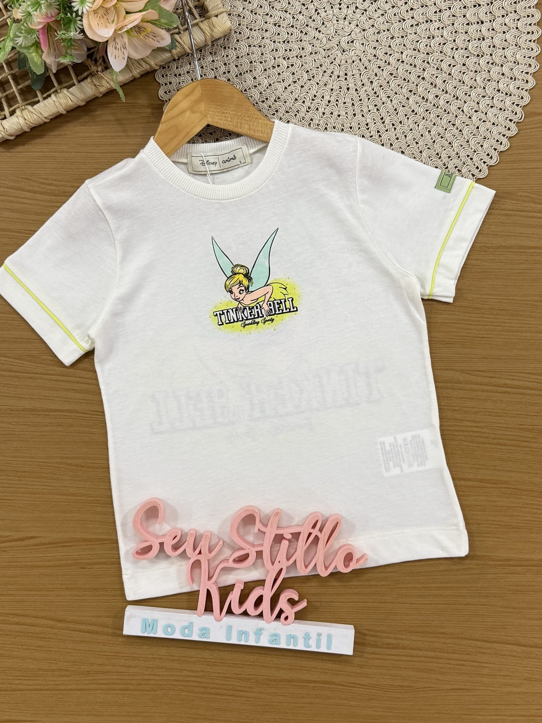 Blusa Infantil Animê Verão Branca Tinker Bell