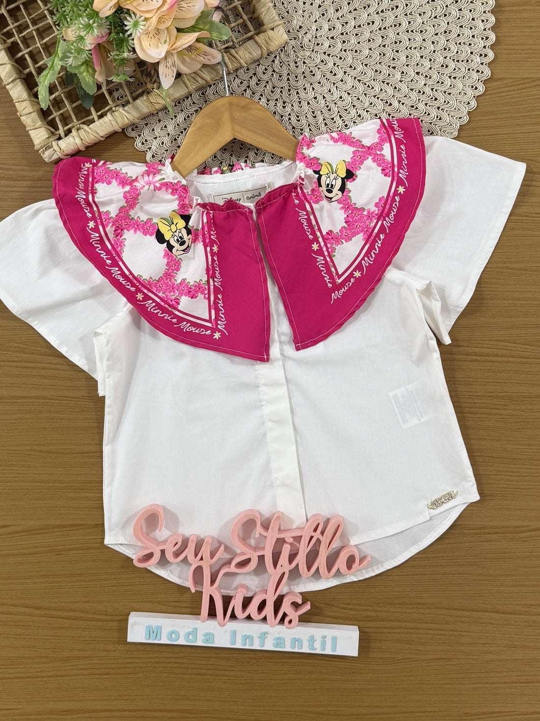 Blusa Infantil Animê Verão Branca Minnie com Strass Disney