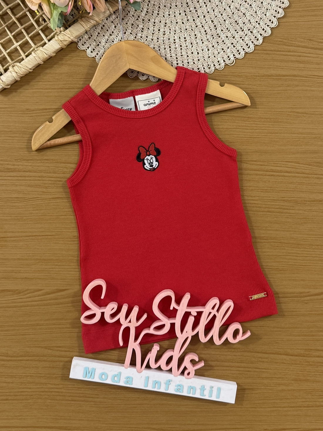 Regata Infantil Animê Verão Vermelha Minnie Disney