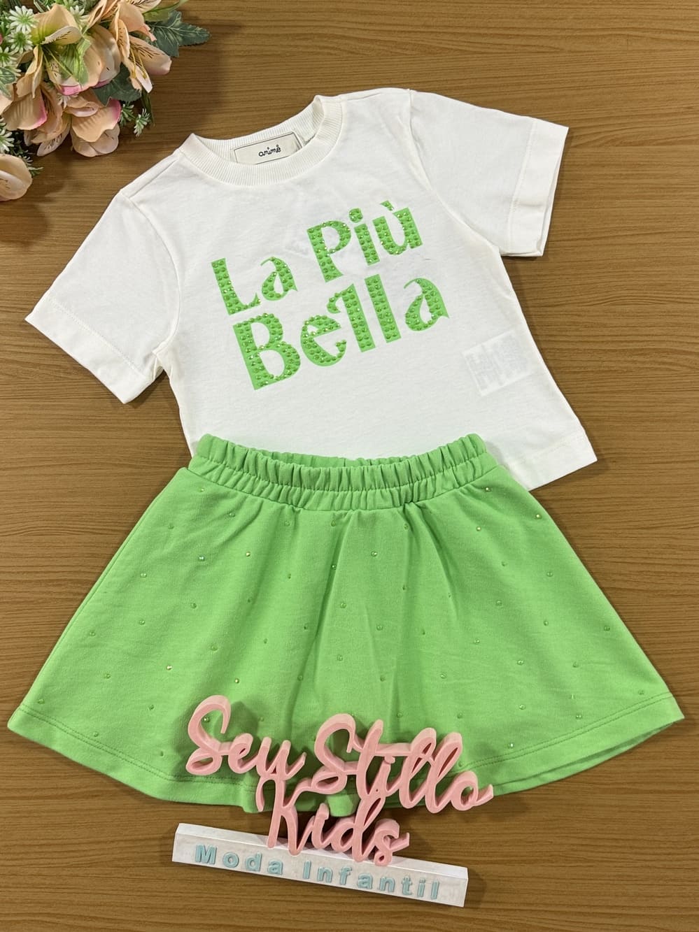 Conjunto Infantil Animê Verão Saia Verde e Blusa La Piu Bella