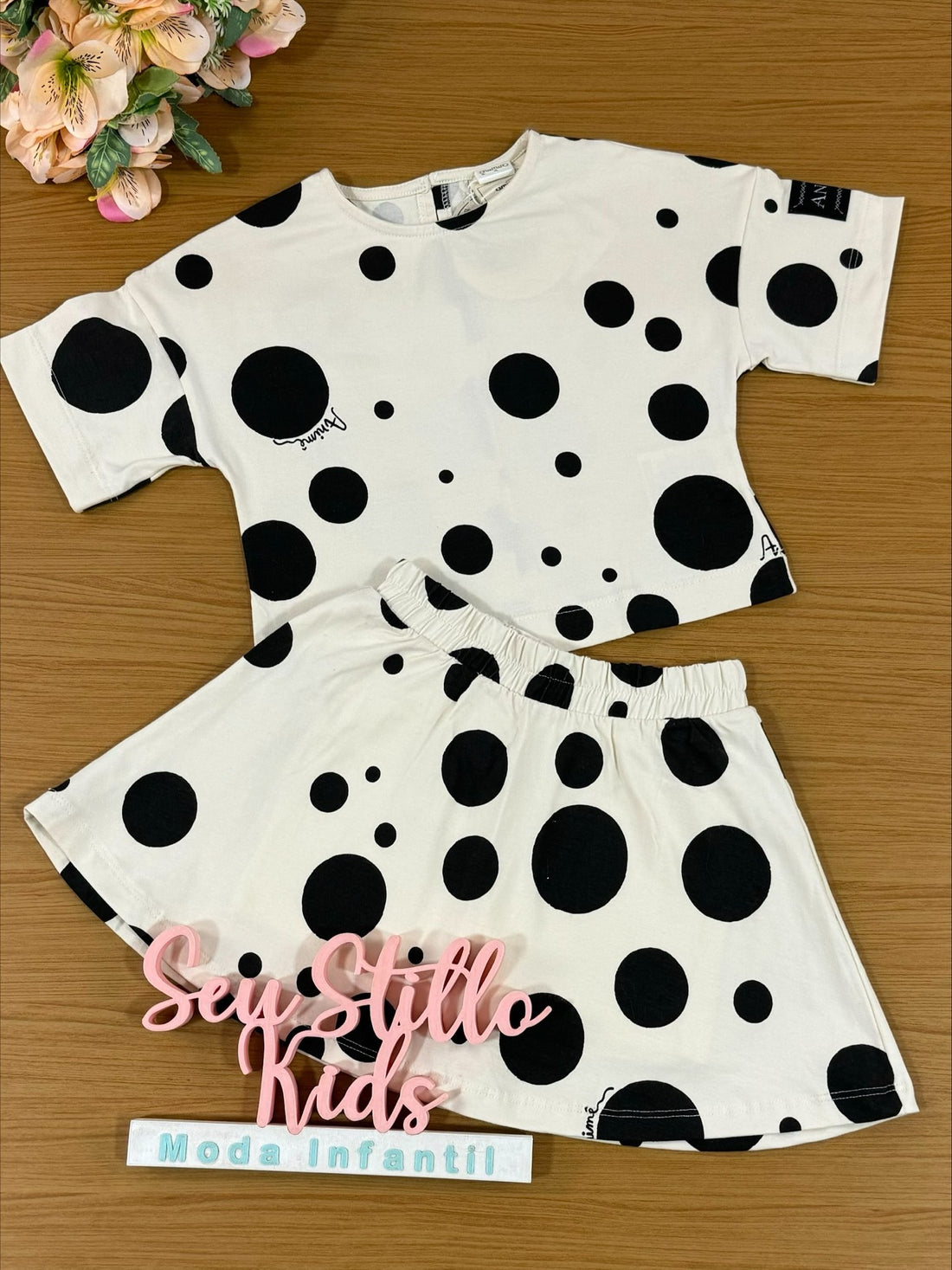 Conjunto Infantil Animê Inverno com Saia e Blusa Manga Curta Poá