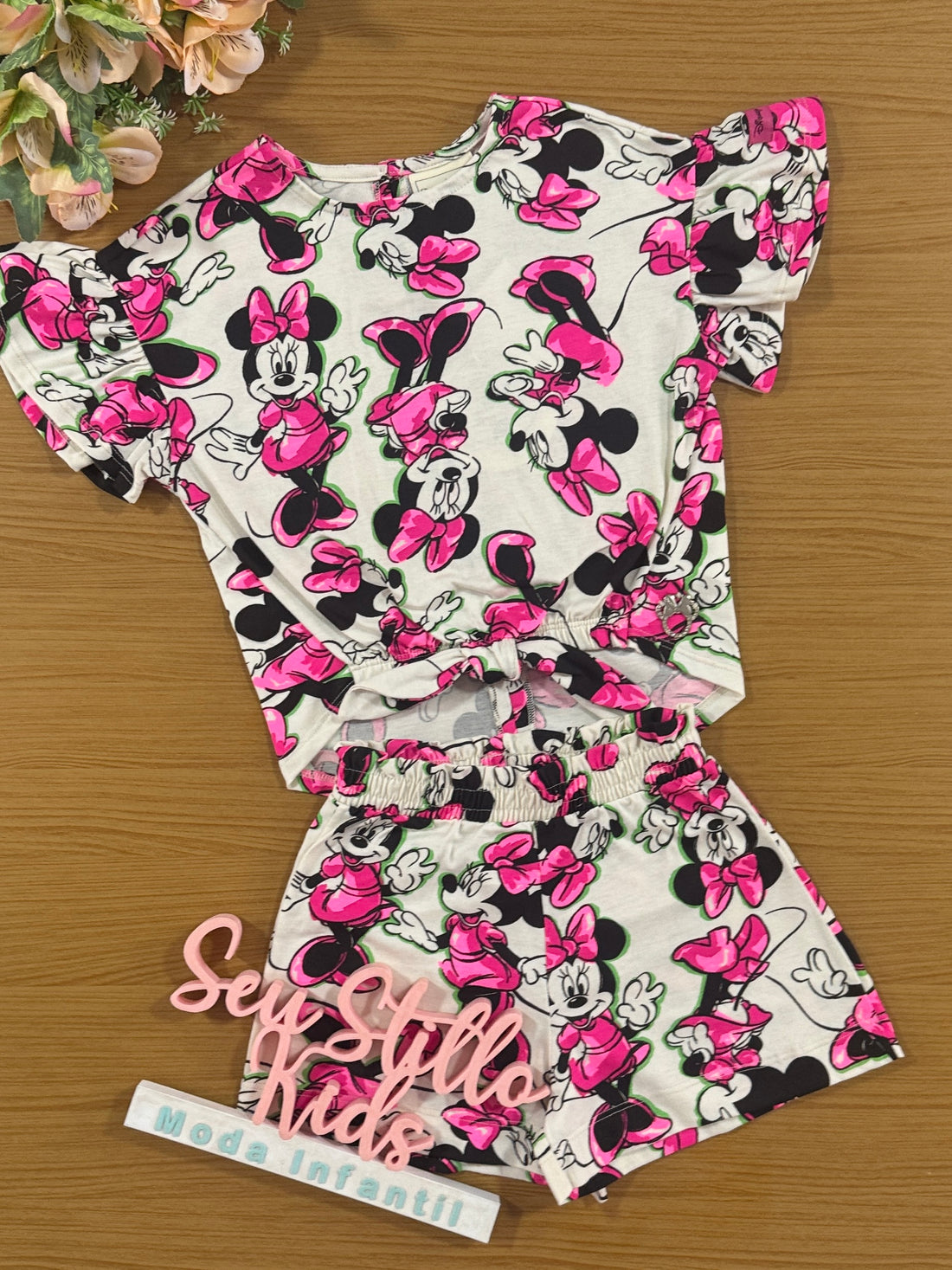 Conjunto Infantil Animê Verão Shorts e Blusa Minnie Rosa Disney