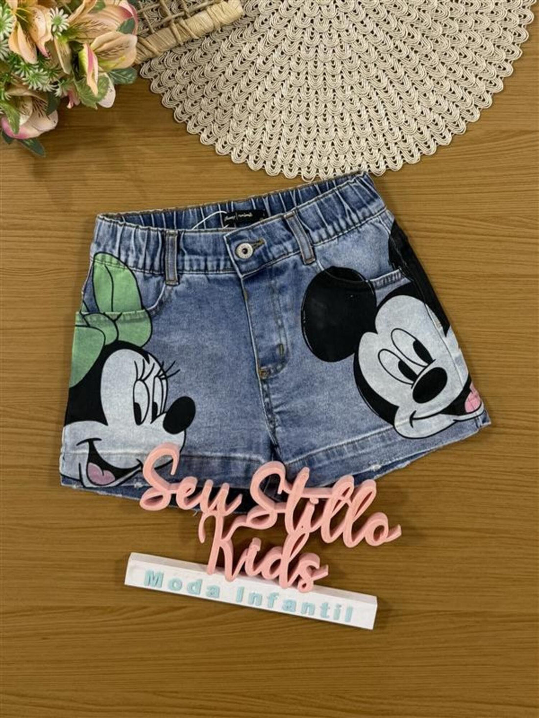 Shorts Infantil Animê Verão Jeans Minnie e Mickey Disney