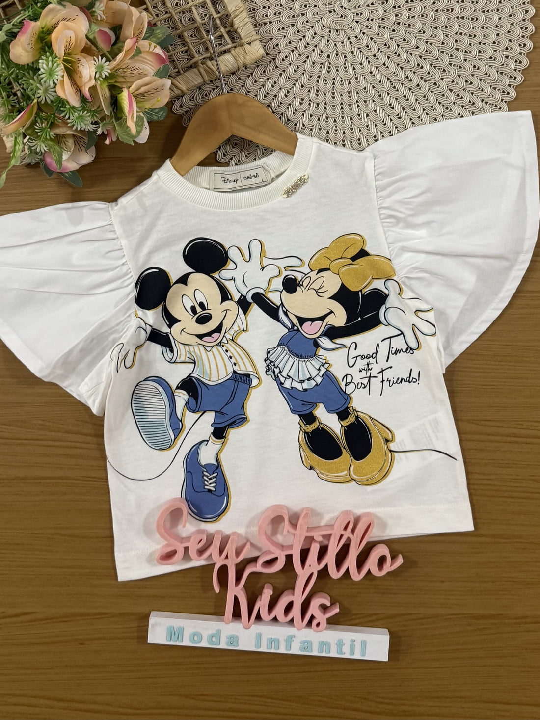 Blusa Infantil Animê Verão Branca Mickey e Minnie Amigos Disney