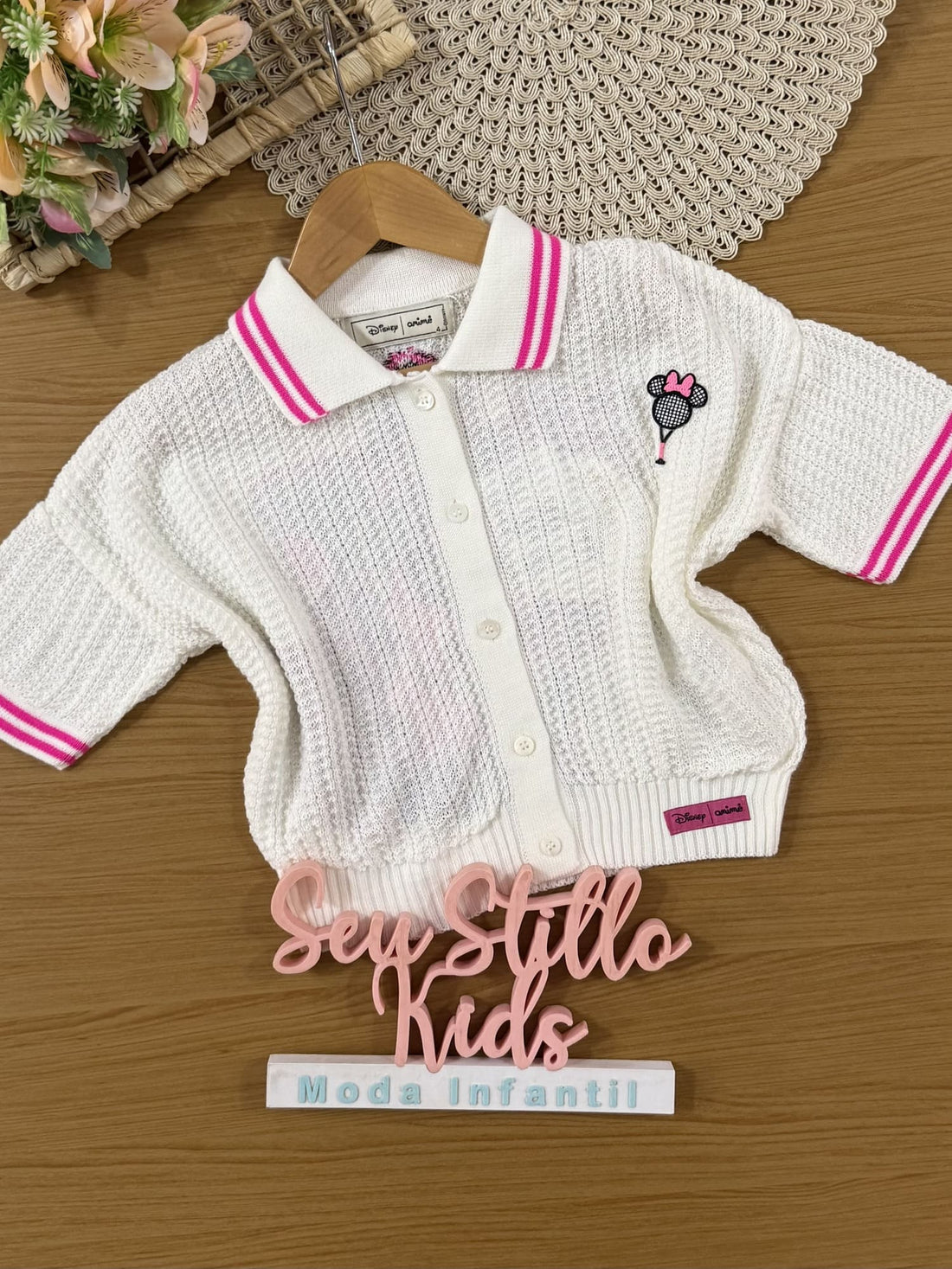 Casaco Infantil Animê Verão em Tricô Branco Minnie Disney