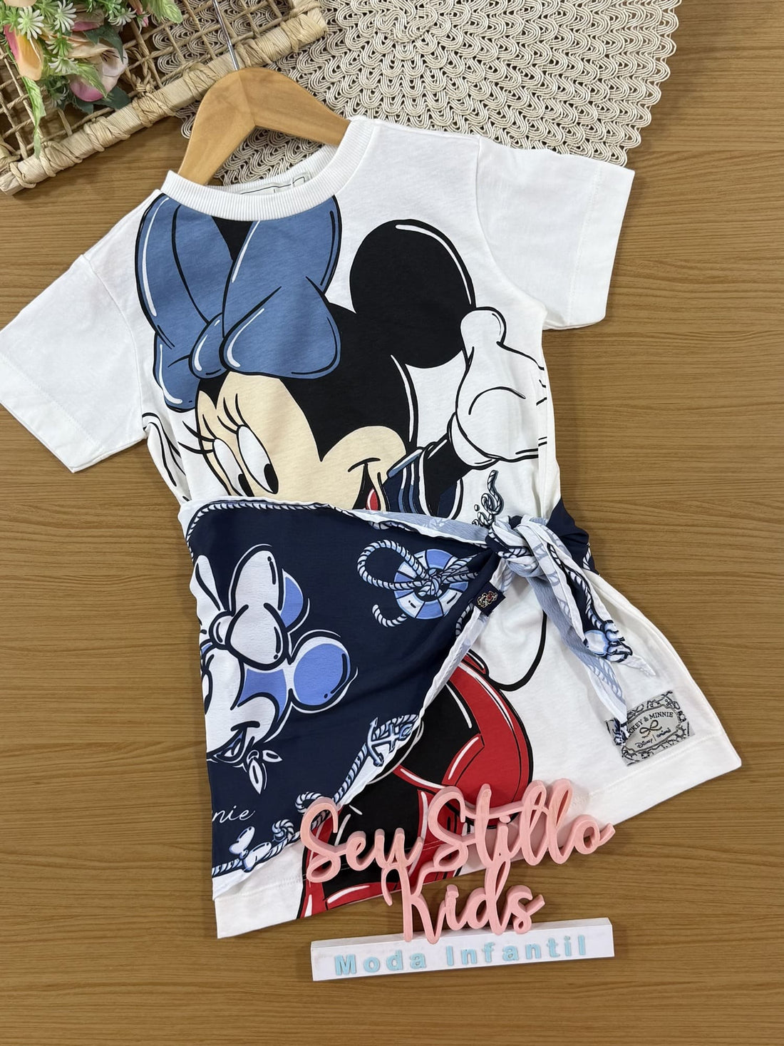 Blusa Boxy Infantil Animê Verão Branca Mickey e Minnie Marinheiros Disney
