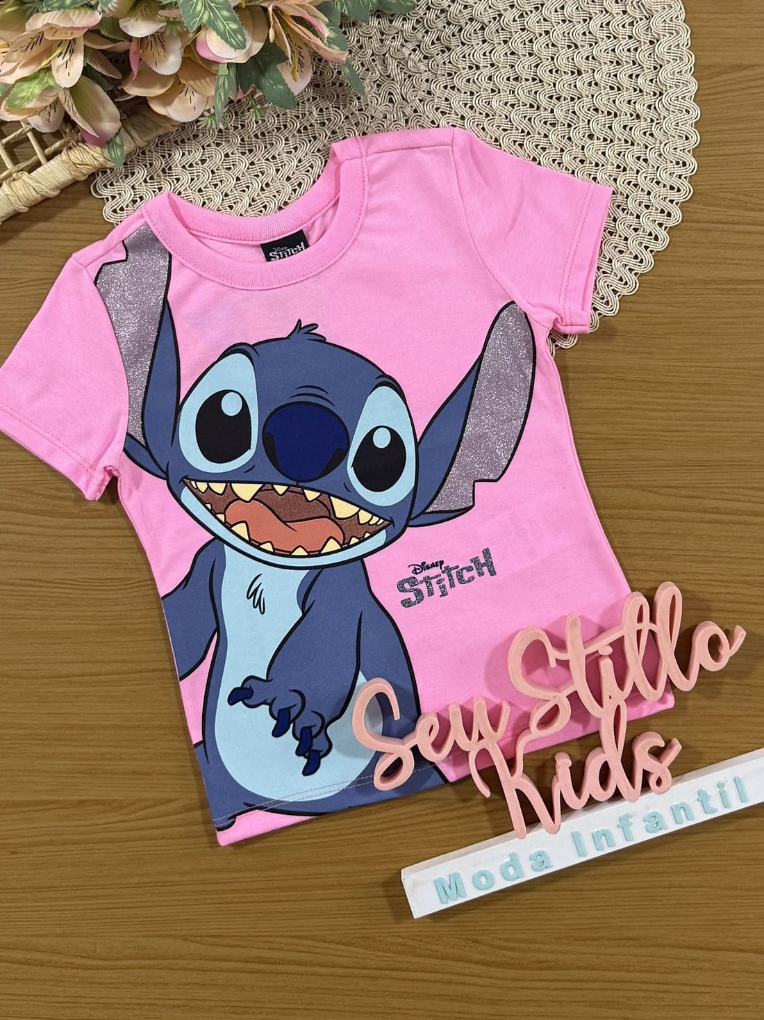 Blusa Infantil Stitch Rosa Brandili Disney