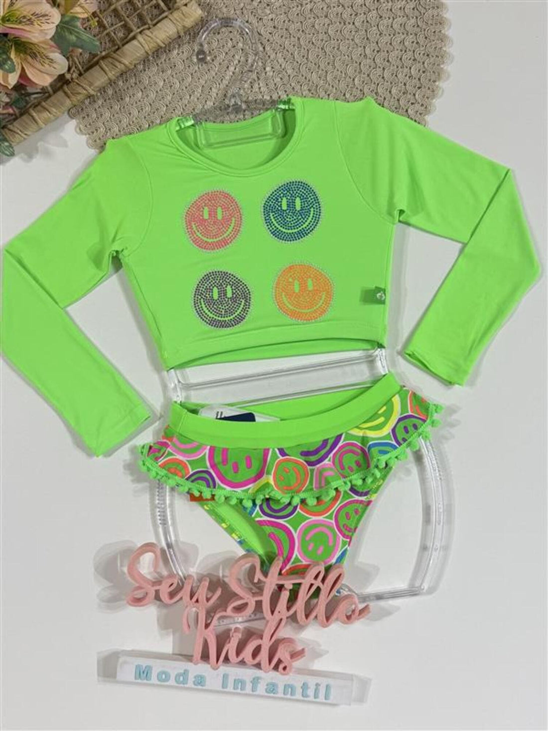 Biquíni Infantil Siri Kids Cropped Manga Longa Bianca Happy Smile 40138