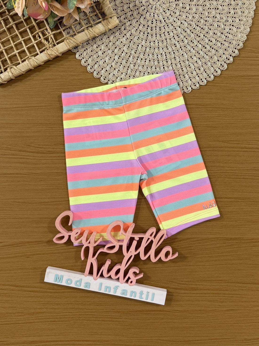 Shorts Infantil Kukiê Verão Ciclista Colorido Listrado