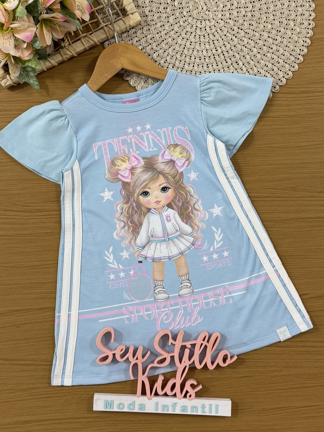 Vestido Infantil Cinti Verão Azul Tennis Sport House