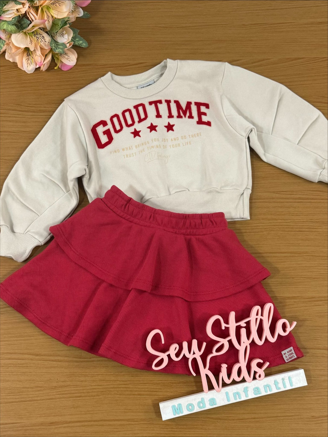Conjunto Infantil Catavento Inverno com Saia Vermelha e Moletom Good