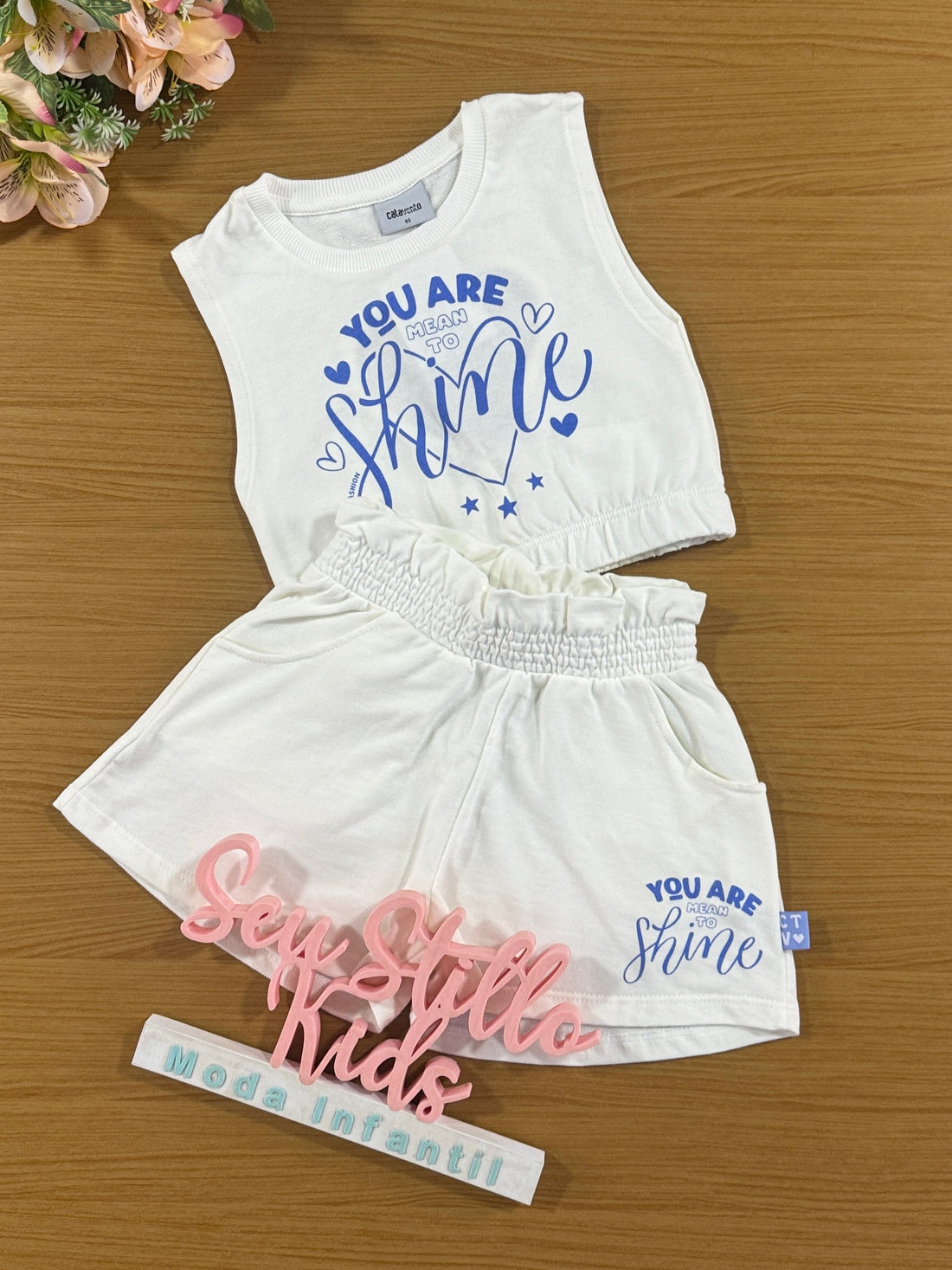 Conjunto Infantil Catavento Verão Shorts e Blusa Off White Shine