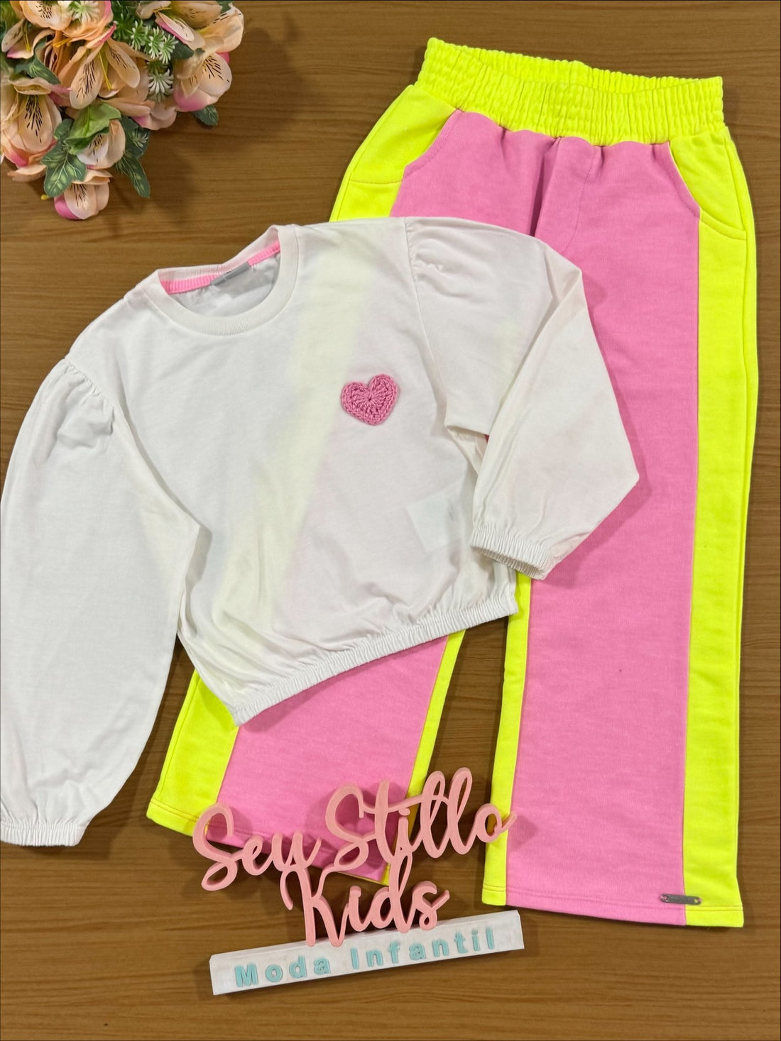 Conjunto Infantil Catavento Inverno Calça e Blusa Coração Neon