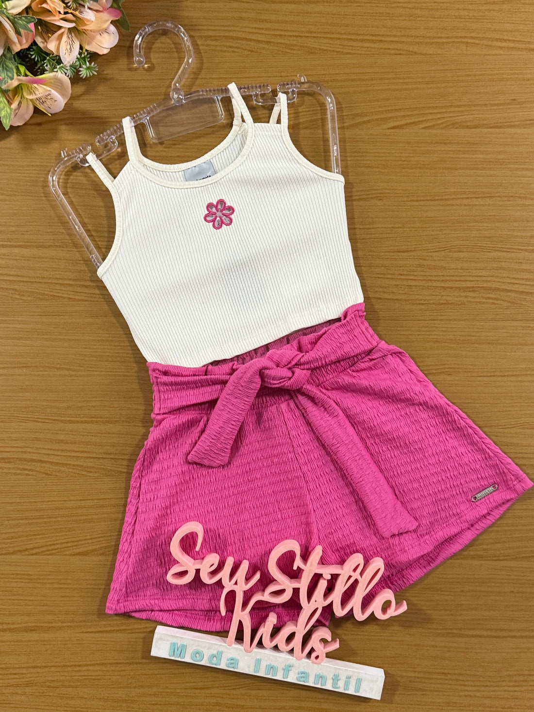 Conjunto Infantil Catavento Verão Shorts Rosa e Blusa Flor