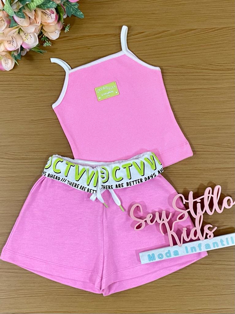 Conjunto Infantil Catavento Verão Com Shorts e Blusa Rosa Vibes