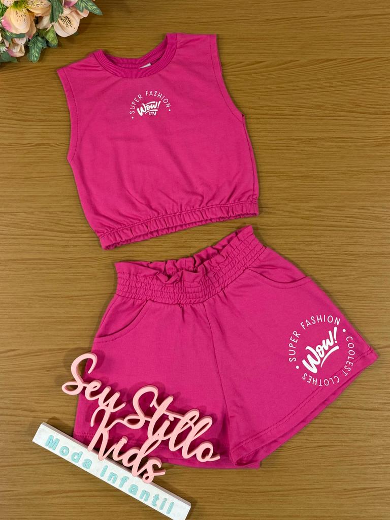 Conjunto Infantil Catavento Verão Com Shorts e Blusa Rosa Escuro