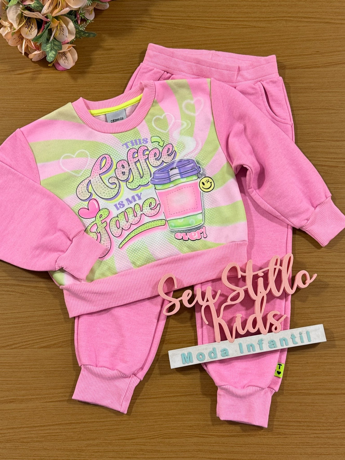 Conjunto Infantil Catavento Inverno Calça e Moletom Flanelado Coffe Colorido