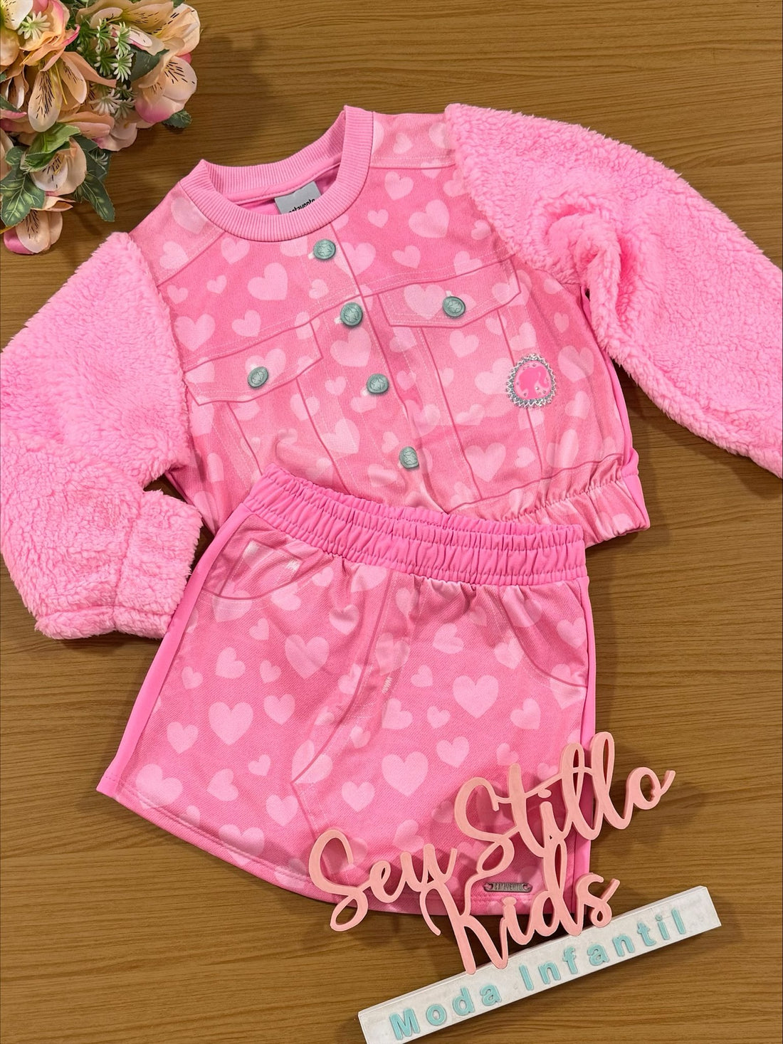 Conjunto Infantil Catavento Inverno Shorts Saia e Blusa Barbie
