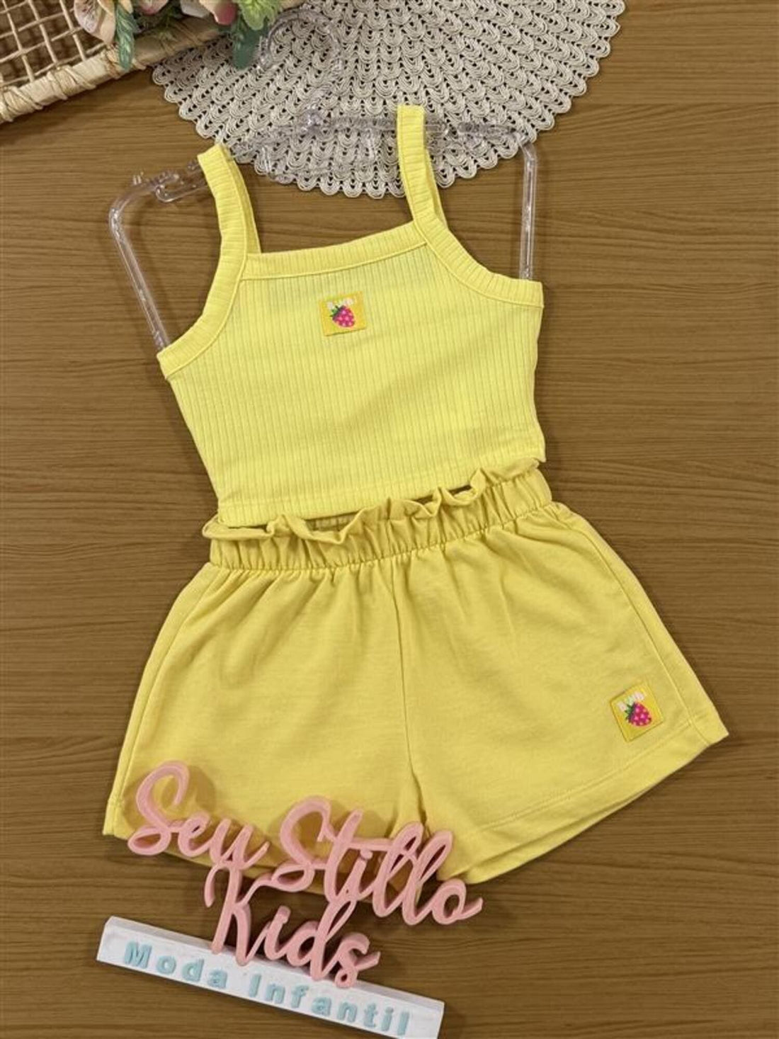 Conjunto Infantil Bimbi Verão com Shorts e Regata Amarela Moranguinho
