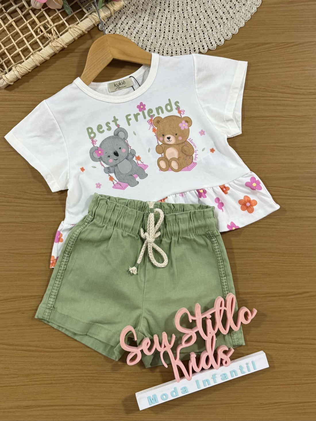 Conjunto Infantil Kukiê com Shorts Verde e Blusa Branca Best Friends