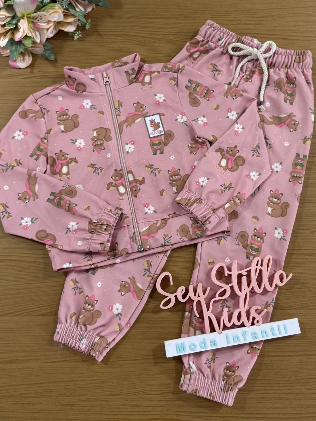 Conjunto Infantil Kukiê Alecrim Inverno com Calça e Jaqueta Boxy Esquilinhos