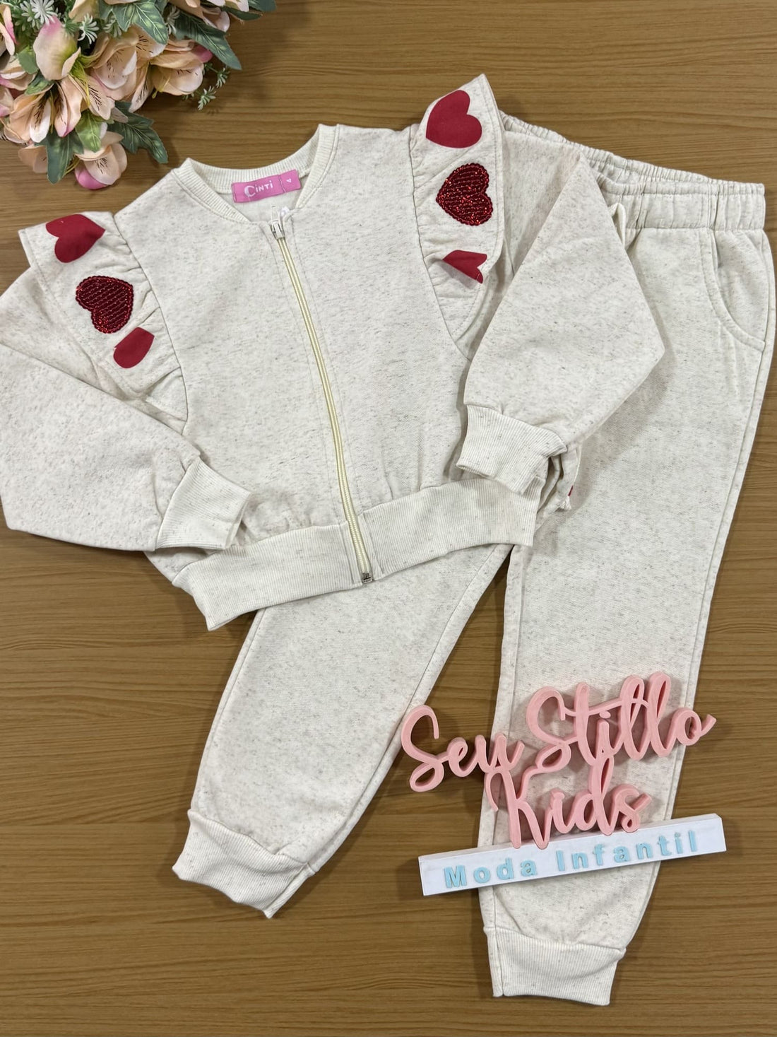 Conjunto Infantil Cinti Inverno Calça e Moletom Flanelado Corações