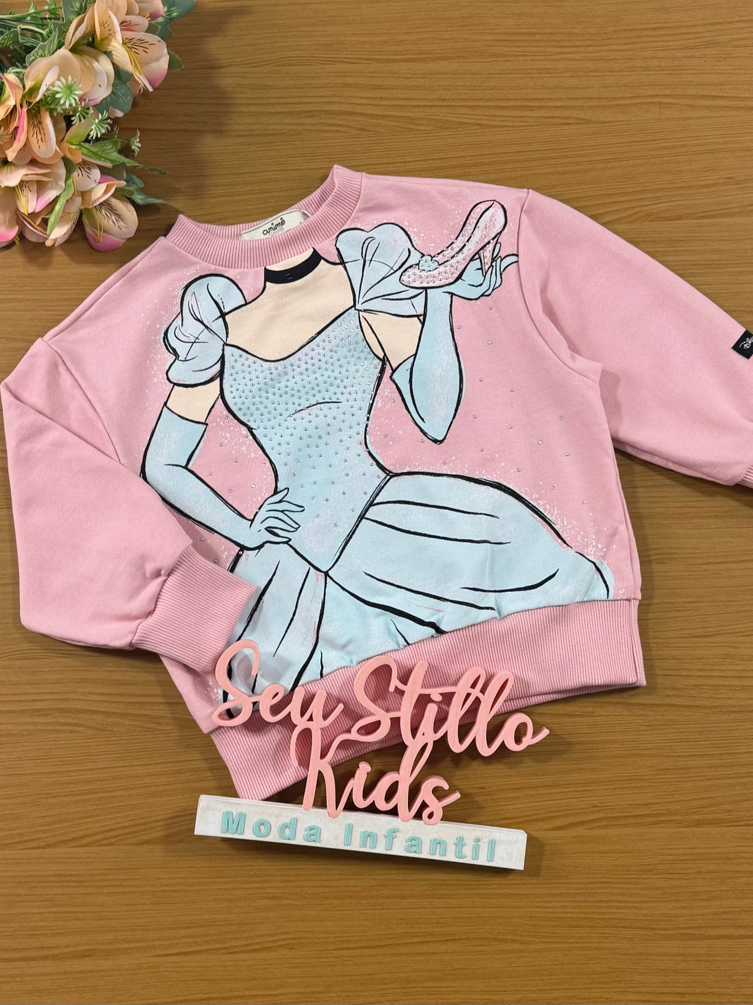 Conjunto Infantil Animê Inverno Shorts Saia Rosa e Blusa Minnie Preta Disney
