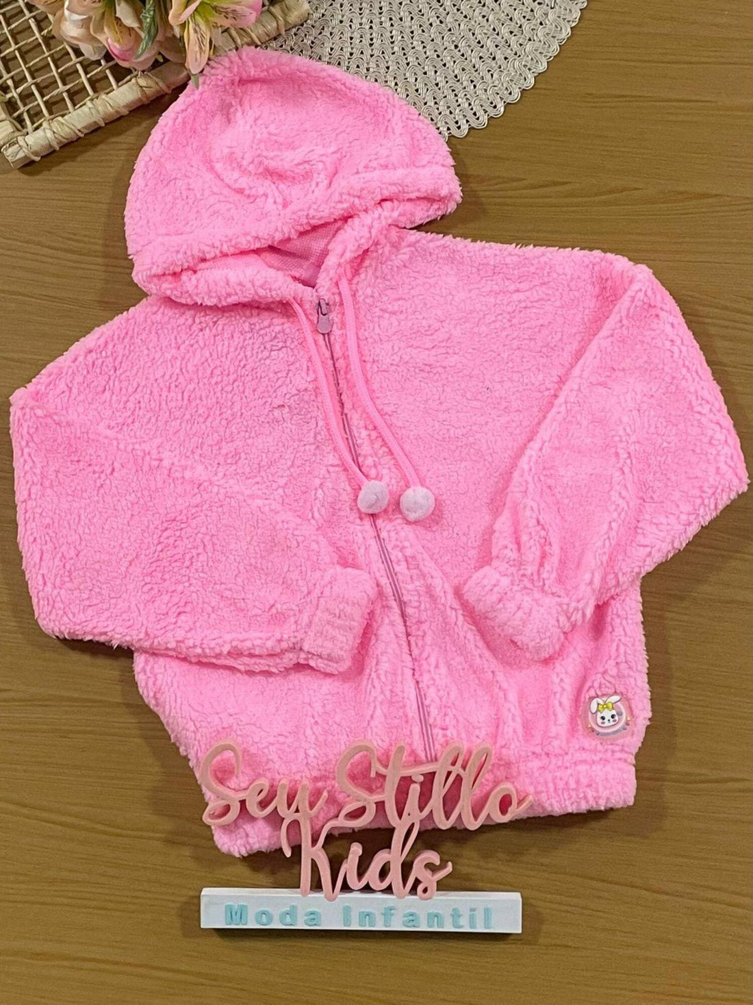 Jaqueta Infantil Cinti Inverno sem Flanela com Pelo Carneirinho Rosa